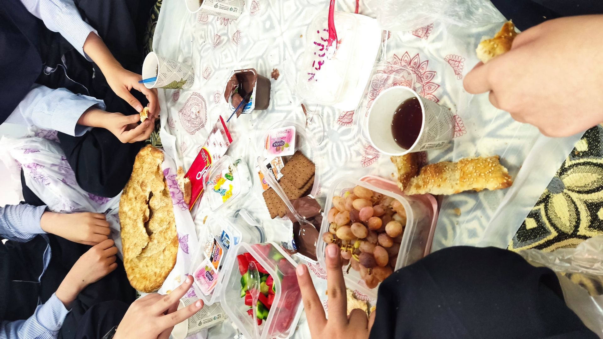 سه شنبه ۲۲ مهرماه برنامهای شاد و گروهي در حیاط مدرسه برگزار شد. دانشآموزان در قالب گروههای کوچک سفرههای صبحانه را خودشان چیدند و انواع خوراکیهای سالم مانند نان، پنیر، گردو، تخممرغ، عسل و میوه را آماده کردند.