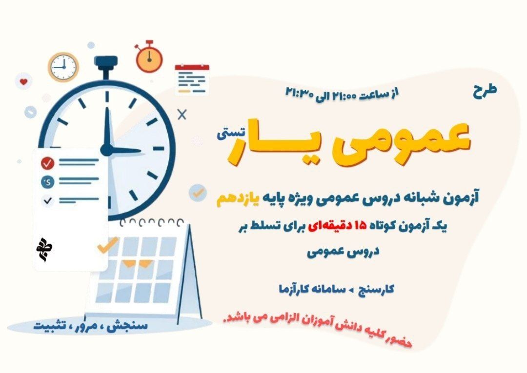 ✏️آزمون تستی شبانه از دروس عمومی برای تسلط بیشتر و تثبیت مطالب تدریس شده